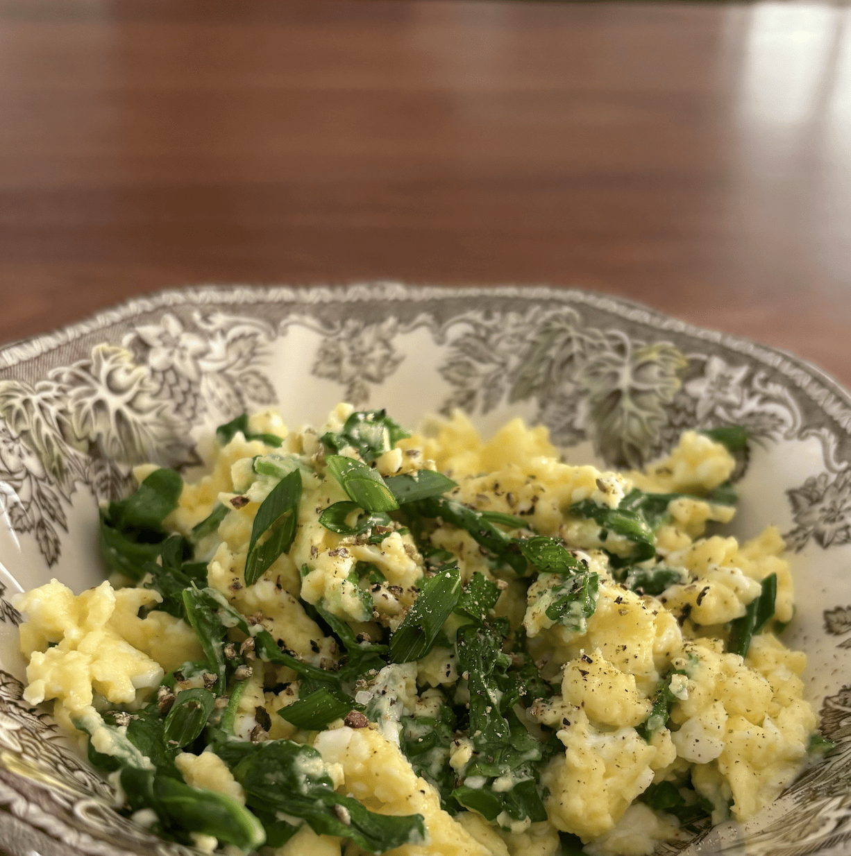 Susan Halsey sent me this incredibly tasty looking arugula and chive egg scramble dish she made with her spring harvest. Keep these ideas coming!